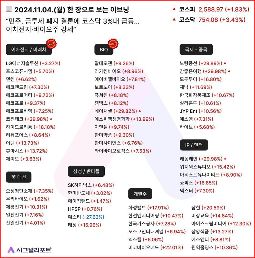 ⭐증시 한줄평: 금투세 변수 제거에 국내증시 강한 상승세