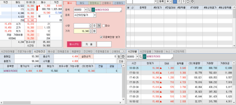 결론 및 내일의 시나리오: 시간외 단일가 매수세가 6시까지 굉장히 강력하다는 느낌이 들어서 아침에 9시10분 이전에만 팔아도 최소 5%이상 수익은 기대할수 있지 않을까? 라는 생각이 든다. 5% 수익이라니. 진짜 황송하다.